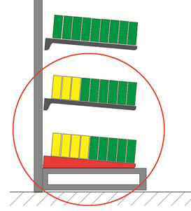 Oferujemy specjalne wyposażenie do wszystkich popularnych regałów metalowych z nachylonymi półkami. Oznacza to oszczędność kosztów instalacji przy zachowaniu niewielkich rozstawów półek.